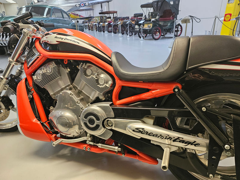The Screamin’ Eagle Destroyer is finished in a bold, factory orange and black race livery, true to its Harley-Davidson performance heritage.